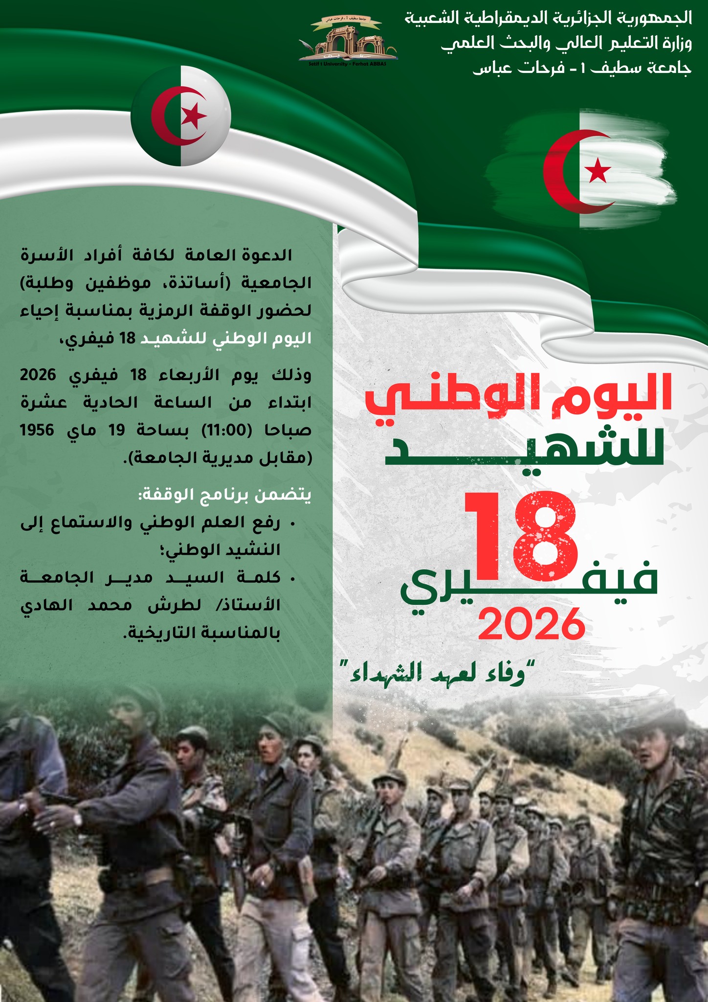 تنظم جامعةسطيف 1 فرحات عباس مسابقة وطنية للالتحاق بالتكوين في دكتوراه الطور الثالث بعنوان السنة الجامعية 2026/2025.