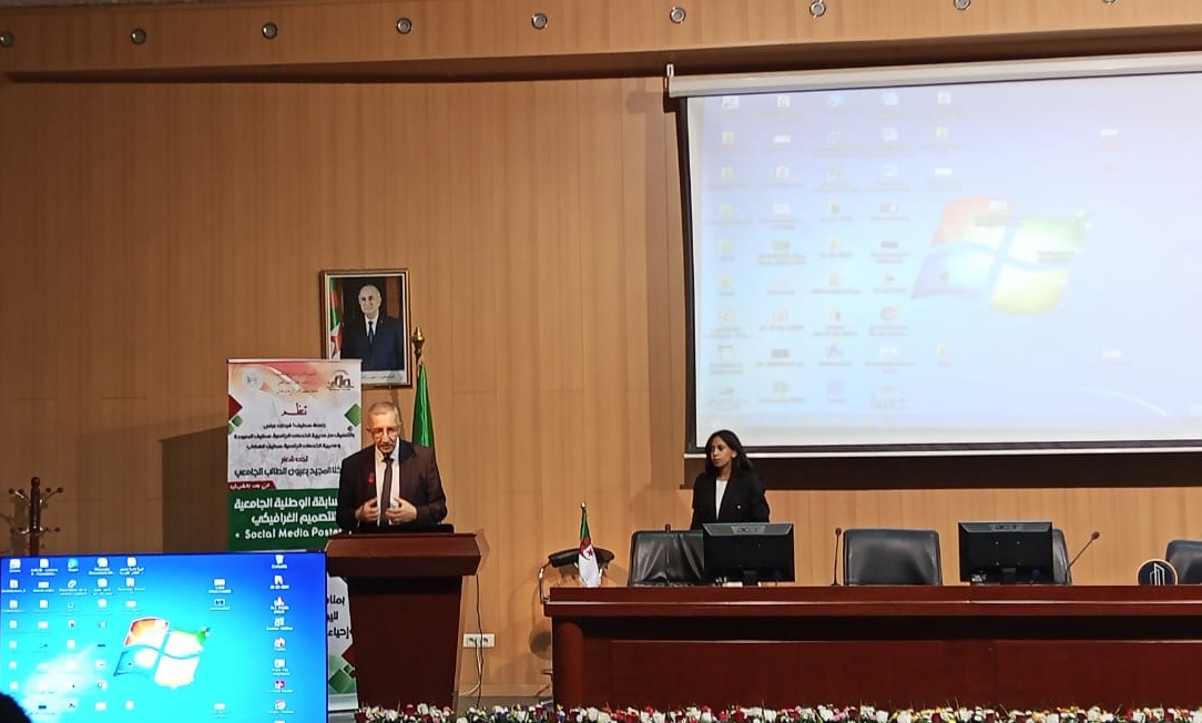 أعطى السيد مدير جامعة سطيف 1 - فرحات عباس، الأستاذ محمد الهادي لطرش، صباح يوم الأربعاء 29 أكتوبر 2025، إشارة انطلاق فعاليات الطبعة الثانية للمسابقة الوطنية الجامعية للتصميم الغرافيكي، المنظمة احتفاءً باليوم الوطني للهجرة وذكرى اندلاع الثورة التحريرية المجيدة، تحت شعار: "تاريخنا المجيد بعيون الطالب الجامعي".
